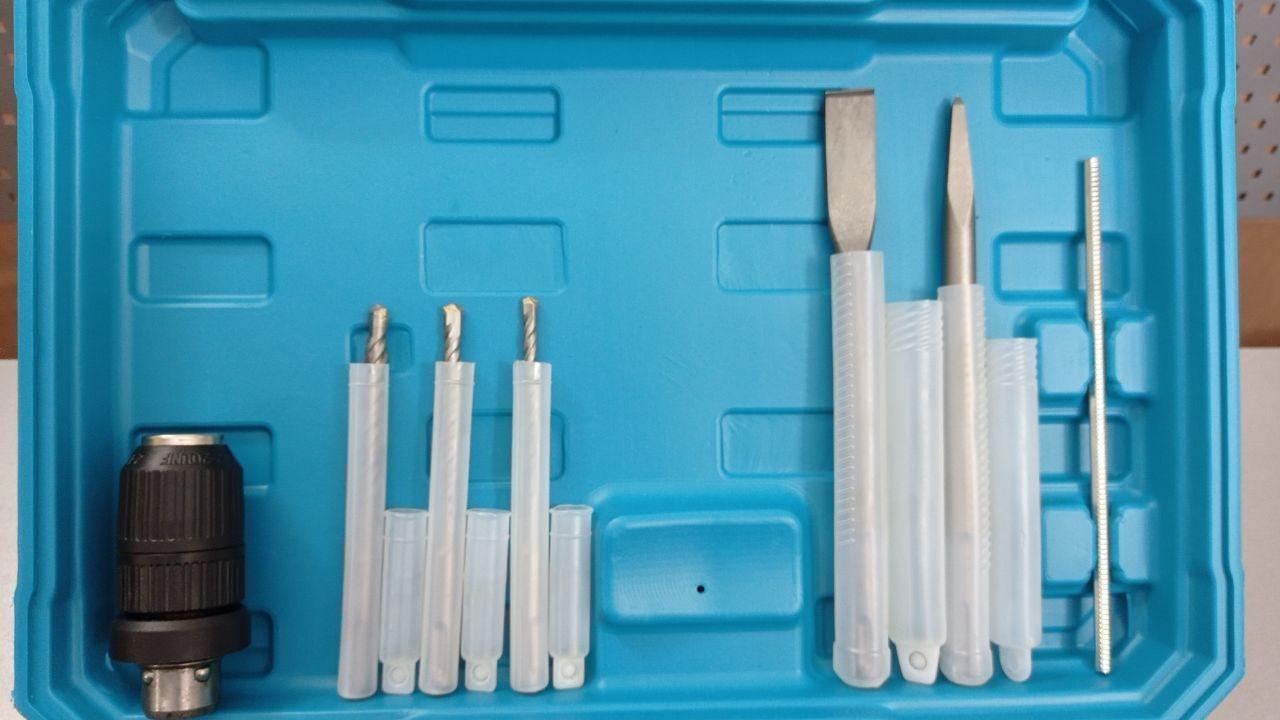 Комплектація | Швидкозатискний патрон (DFR), Бури, Зубіло, Піка, Додаткова рукоятка, Інструкція з експлуатації, Гарантійний талон |